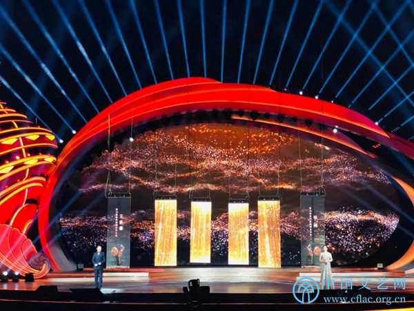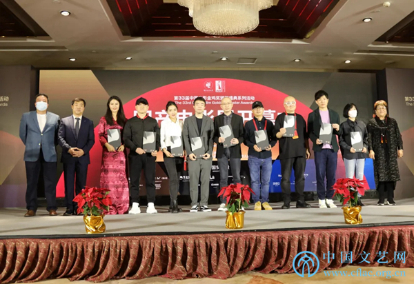 11月25日,第33届中国电影金鸡奖音乐会暨开幕式在福建厦门举行。图为嘉宾王景春、咏梅“点亮金鸡”。