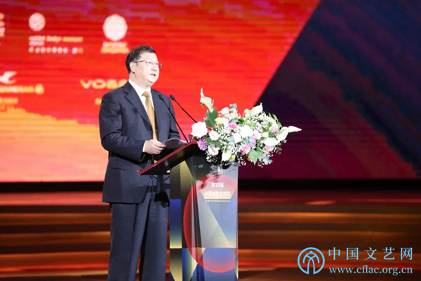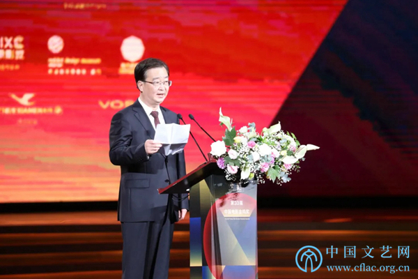 11月25日,第33届中国电影金鸡奖音乐会暨开幕式在福建厦门举行。图为中国文联党组成员胡孝汉在开幕式上致辞并宣布第33届中国电影金鸡奖颁奖盛典系列活动开幕。