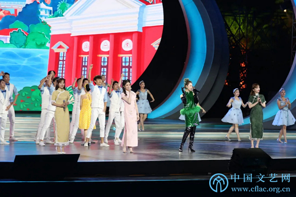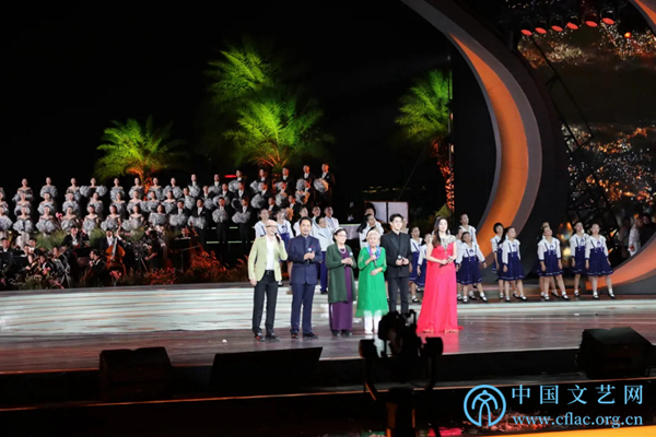 11月25日,第33届中国电影金鸡奖音乐会暨开幕式在福建厦门举行。图为王晓棠、谢芳、刘劲、平安、曾舜晞、钟丽燕演唱歌曲《我和我的祖国》。