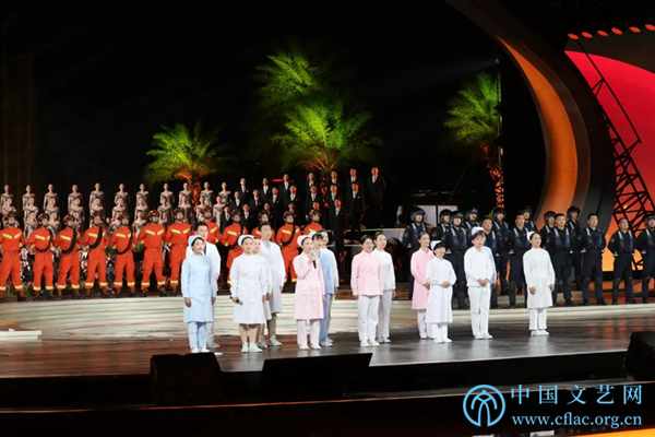 11月25日,第33届中国电影金鸡奖音乐会暨开幕式在福建厦门举行。图为厦门援鄂医护人员代表和武汉医护人员代表演唱歌曲《我们》。