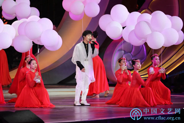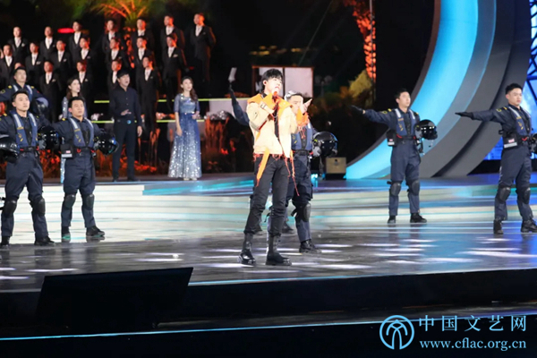 11月25日,第33届中国电影金鸡奖音乐会暨开幕式在福建厦门举行。图为摩登兄弟刘宇宁演唱歌曲《迎难而上》。