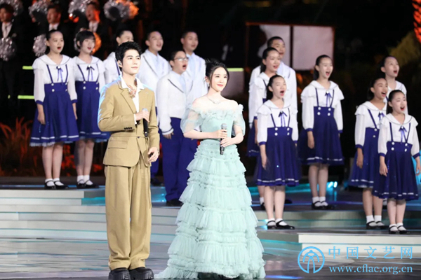 11月25日,第33届中国电影金鸡奖音乐会暨开幕式在福建厦门举行。图为陈学冬、唐艺昕演唱歌曲《大海啊故乡》。