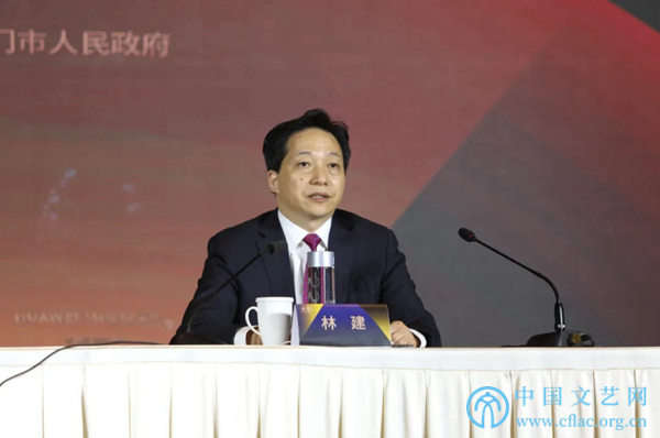 11月25日,第33届中国电影金鸡奖颁奖盛典系列活动新闻发布会在福建厦门举行。图为厦门市副市长林建介绍电影节相关情况。