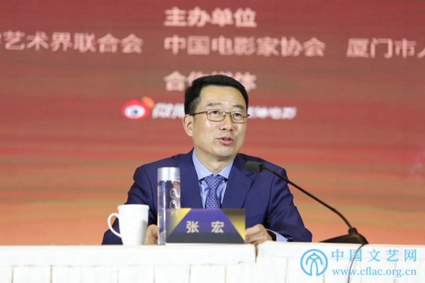 11月25日,第33届中国电影金鸡奖颁奖盛典系列活动新闻发布会在福建厦门举行。图为中国影协分党组书记、驻会副主席张宏介绍电影节相关情况。