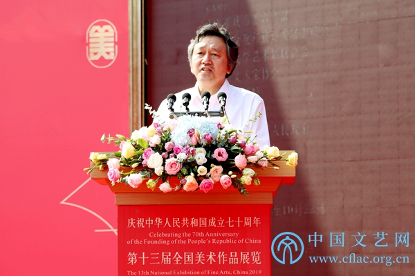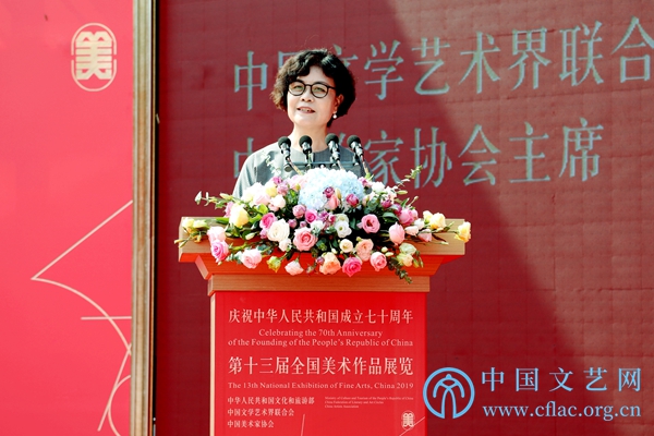 铁凝在讲话中指出,五年一届的全国美术作品展览作为国家级的综合性大展,是中国美术工作者创作的风向标,对于指导中国未来几年的艺术创作有着深刻的影响。今年,恰逢中华人民共和国成立70周年。中国文联作为党和政府联系文艺界的桥梁和纽带,在团结引领文艺工作者、繁荣发展社会主义文艺事业方面肩负重要职责。习近平总书记在中国文联、中国作协成立70周年之际发来的贺信中写道:文艺事业是党和人民的重要事业,文艺战线是党和人民的重要战线。新中国成立70年来,广大文艺工作者响应党的号召,积极投身社会主义革命和建设、改革开放伟大实践,创作出一批又一批脍炙人口的优秀文艺作品,塑造了一批又一批经典艺术形象。弘扬了民族精神和时代精神,为实现国家富强、社会进步、人民幸福作出了十分重要的贡献。