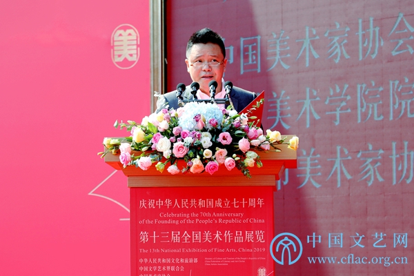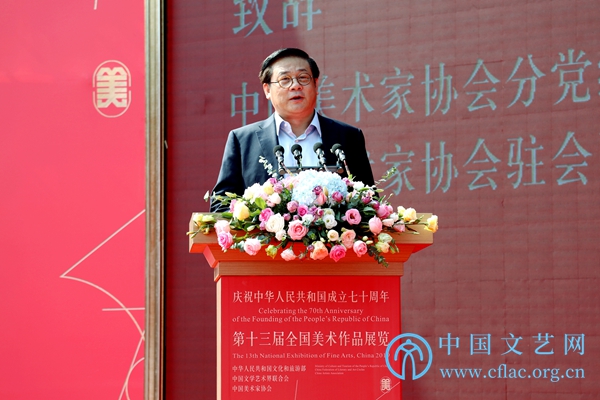 9月22日,“第十三届全国美术作品展览油画作品展”在重庆开幕。图为中国美协分党组书记、驻会副主席、第十三届全国美展组委会副主任徐里在开幕式上致辞。中国文艺网 韩雪竹摄
