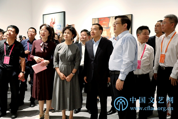 9月22日,“第十三届全国美术作品展览油画作品展”在重庆开幕。图为与会领导嘉宾参观展览。中国文艺网 韩雪竹摄