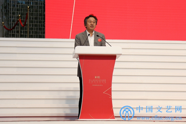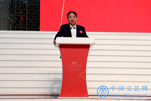 10月10日,“第十三届全国美展实验艺术作品展”在廊坊开幕。图为第十三届全国美展组委会副主任、文化和旅游部艺术司司长诸迪在开幕式上致辞。 中国文艺网 高森 摄