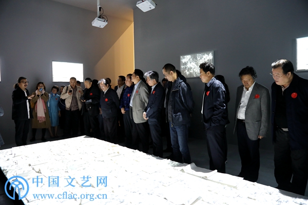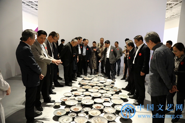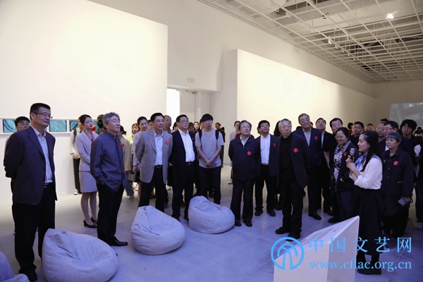10月10日,“第十三届全国美展实验艺术作品展”在廊坊开幕。图为领导嘉宾参观展览。 中国文艺网 高森 摄