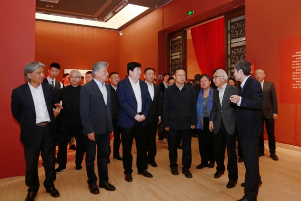中宣部副部长、文化和旅游部部长孙业礼出席开幕式并宣布展览开幕。中国文联党组书记、副主席李屹出席开幕式并致辞。中国作协党组书记、副主席张宏森,文化和旅游部党组成员、副部长卢映川,中国文联党组成员、副主席诸迪,中国文联党组成员、书记处书记高世名,中国文联党组成员、书记处书记、国内联络部主任谢力,全国政协副秘书长、中国美术馆馆长吴为山,中国国家博物馆馆长高政,中国美协主席范迪安以及艺术家代表靳尚谊等出席开幕式。