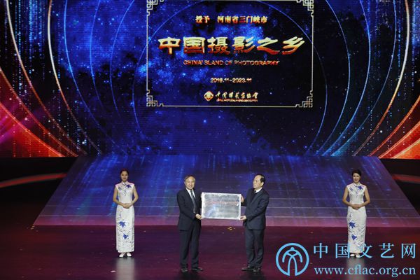 11月18日,第十二届中国摄影金像奖颁奖典礼在三门峡举办。图为“中国摄影之乡”授牌仪式现场。陈黎明 摄