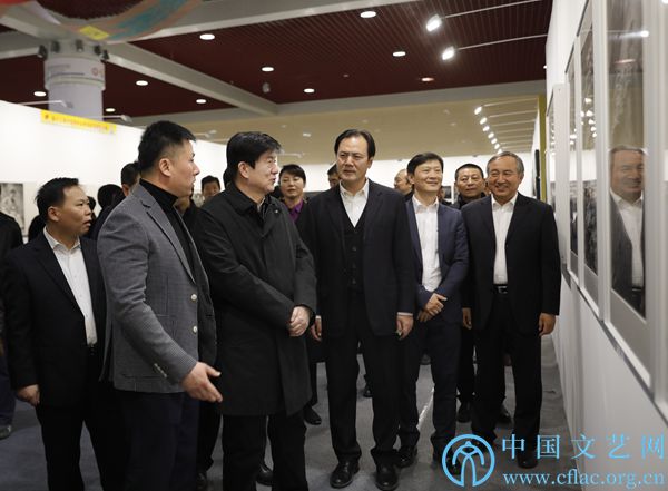 11月18日,第十二届中国摄影艺术节暨第二届三门峡白天鹅野生动物国际摄影大展开幕式在三门峡举办。图为领导嘉宾观看中国摄影金像奖获奖者作品展。陈黎明 摄