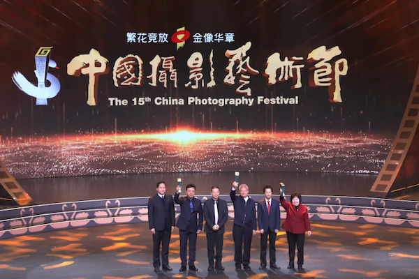 繁花竞放,金像华章。11月23日,第十五届中国摄影艺术节暨第十五届中国摄影金像奖颁奖典礼在河南三门峡举办。20位摄影人分获第十五届中国摄影金像奖3个类别的奖项,杨勇、李好、姚大伟、刘阳、谷永威、余红春、徐渊明、支江、诺敏·何获纪实摄影类奖项;肖戈、祁小龙、王培权、储卫民、潘新华、吕永胜、敖国兴、王智获艺术摄影类奖项;陈桥顿、朱秀英、景卫东获商业摄影类奖项。徐永辉、何世尧获“中国文联终身成就奖(摄影)”。