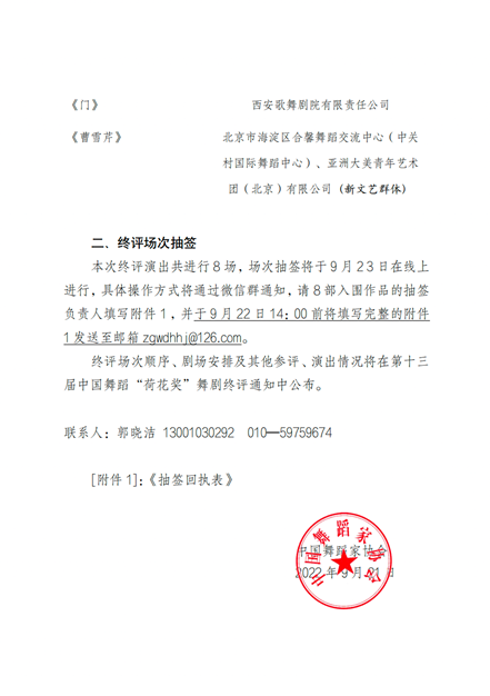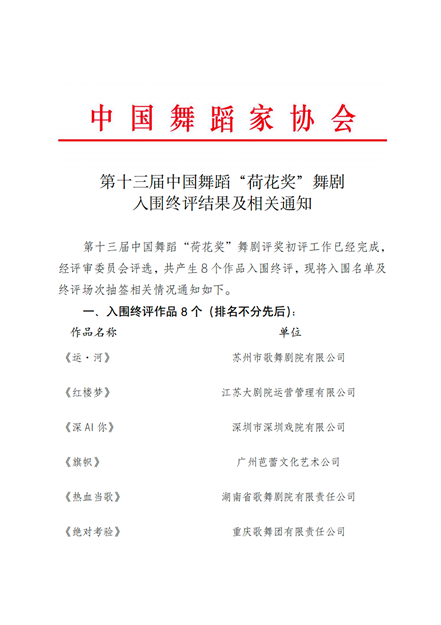第十三届中国舞蹈“荷花奖”舞剧入围终评结果及相关通知