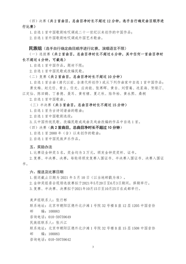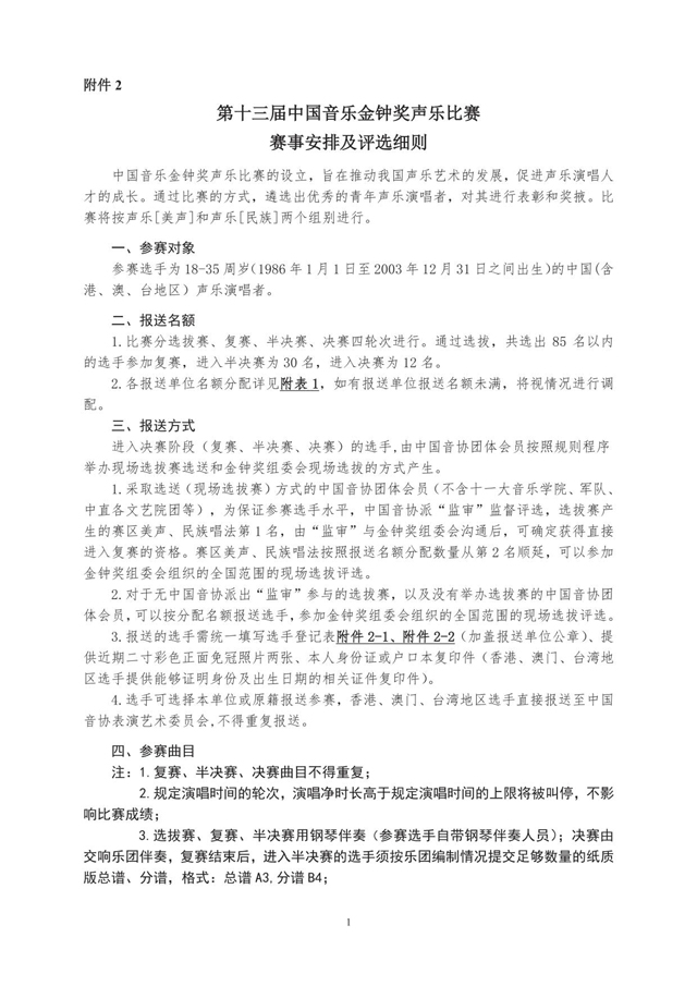 第十三届中国音乐金钟奖声乐比赛赛事安排及评选细则