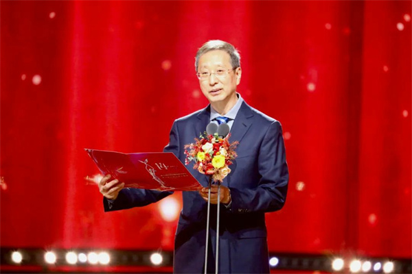11月4日,第14届中国金鹰电视艺术节开幕式暨文艺晚会在湖南省长沙市举行。图为中国视协主席胡占凡致开幕辞。