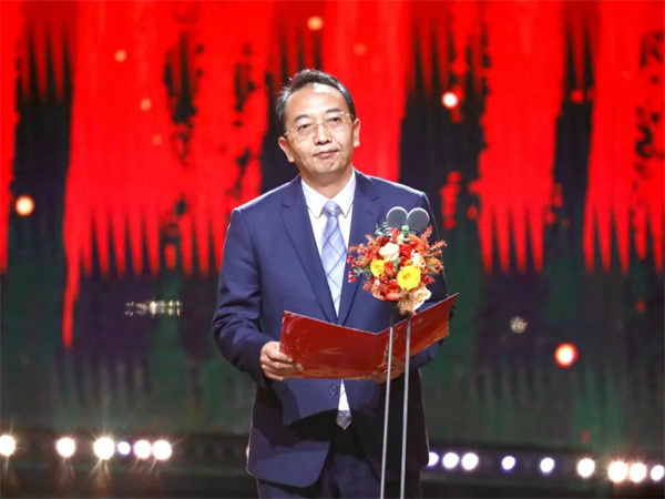 11月4日,第14届中国金鹰电视艺术节开幕式暨文艺晚会在湖南省长沙市举行。图为湖南省委常委、宣传部部长杨浩东致欢迎辞。