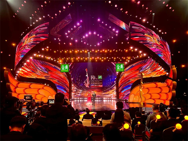 11月4日,第14届中国金鹰电视艺术节开幕式暨文艺晚会在湖南省长沙市举行。图为活动现场。