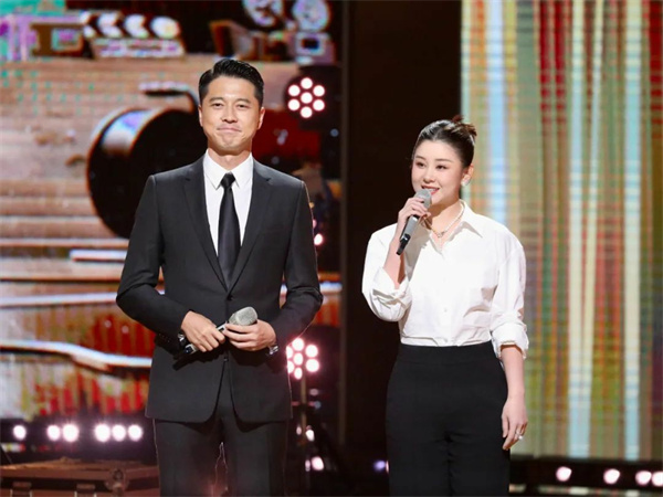 11月4日,第14届中国金鹰电视艺术节开幕式暨文艺晚会在湖南省长沙市举行。图为王雷、李小萌讲述《金色时光》。