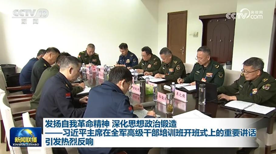 习主席深刻指出,我党我军是用理想信念凝聚起来的,要认真学习党的创新理论,掌握贯穿其中的马克思主义立场观点方法,以理论上的清醒保证政治上的坚定。军队领导干部特别是高级干部要带头严肃党内政治生活,当好讲真话的表率,涵养能容人的雅量,营造说实情、建诤言、敢斗争的浓厚氛围。