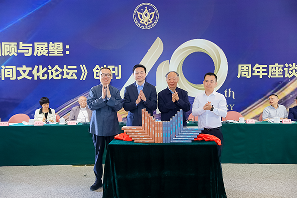 李昕、白庚胜、潘鲁生、尹兴共同为《<民间文化论坛>40年精选集》图书揭幕。中国民协供图