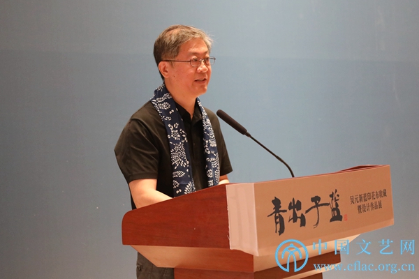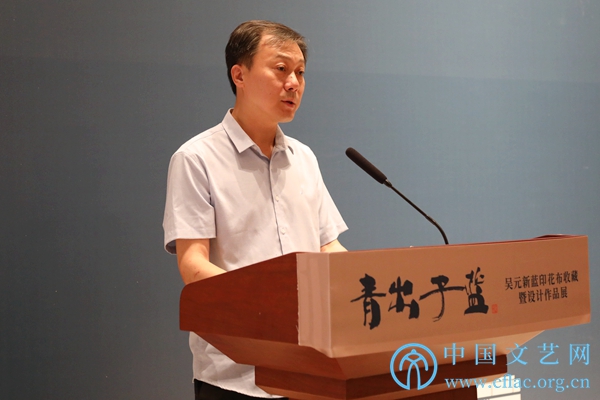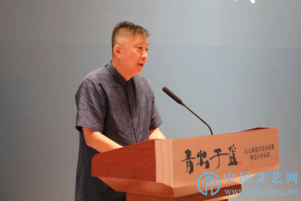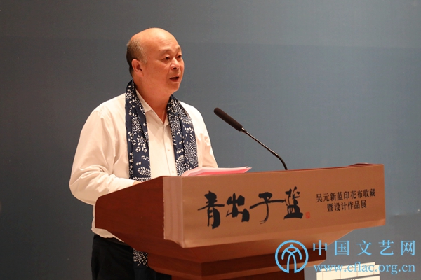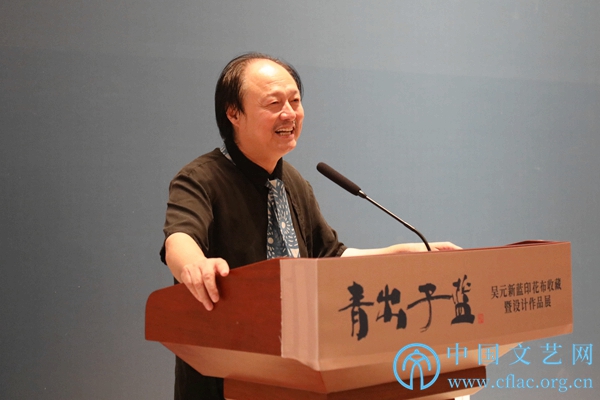 中国工艺美术学会常务理事、中国工艺美术大师、南通蓝印花布博物馆馆长吴元新在开幕式上致辞