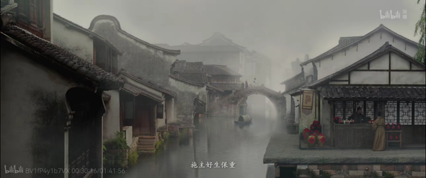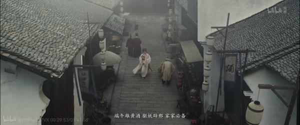 在2019年上映的粤剧电影《白蛇传·情》中,唯美的画面置景有效营造了佳节的氛围,令人印象深刻。许仙手捧一坛雄黄酒行走在如水墨画一般的氤氲街巷中,街边三两好友相聚饮酒,耳边不时传来小贩的吆喝声:“端午雄黄酒,驱妖辟邪,家家必备。”随后许仙和法海在桥上相遇,法海一句“施主好生保重”也预示着厄运即将到来。
