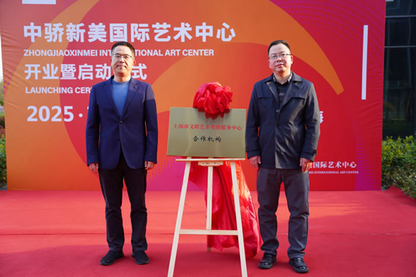 上海文艺事业发展中心主任朱永安与中骄新美国际艺术中心主任董科亮共同揭牌