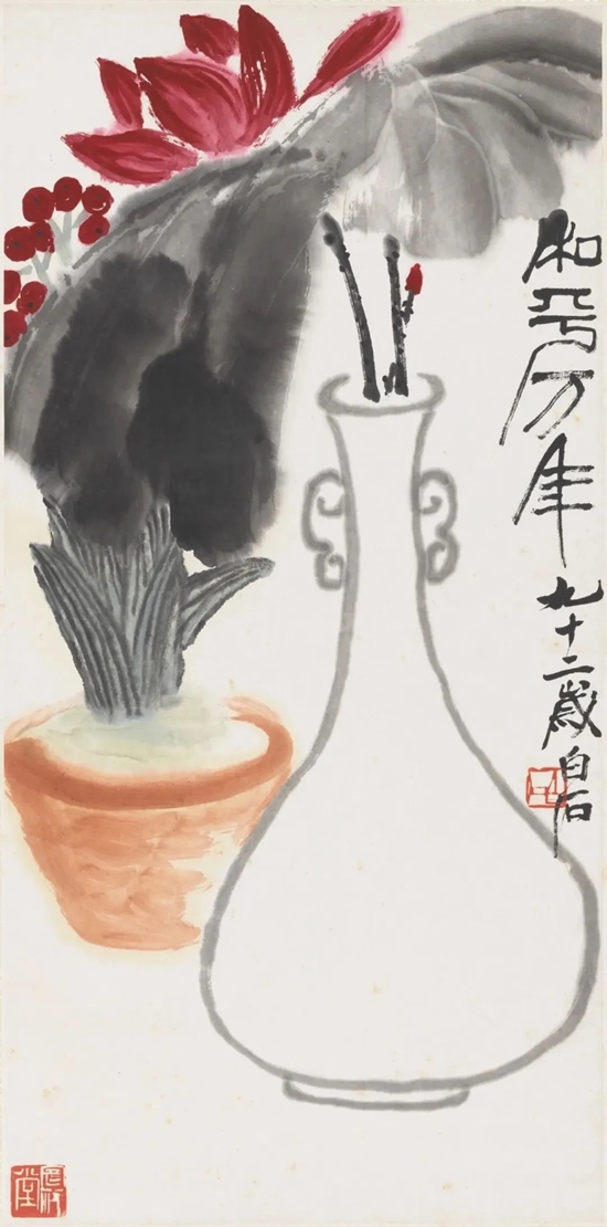 齐白石 和平万年 中国画 1952年 69×33.5cm 中国美术馆藏