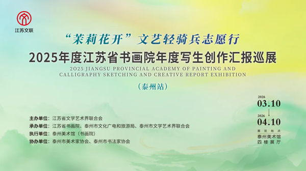 3月10日,“茉莉花开”文艺轻骑兵志愿行——2025年度写生创作汇报巡展在泰州美术馆启幕。本次展览由江苏省文联主办,江苏省书画院等单位承办,展览为期一个月,旨在以文艺志愿服务践行初心使命,推动优质文艺资源直达基层,用笔墨丹青服务人民、奉献社会。