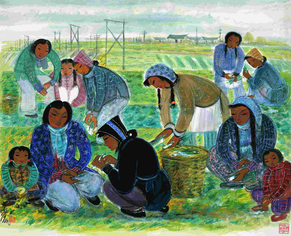 这段时期,他还开始创作以人物组群为主体的现实生活题材绘画,如《渔妇》《农妇》《乡村小学》《菜农》《读书声》等等。虽是现实题材,画家的艺术风格依旧在画中清晰可见,浓烈色彩、浓厚墨线,以及抒情性东方情调。“通过他创造的艺术世界,我们感受到真诚、善良和力量,看到一个本分、执着、坚强、纯真的灵魂。还可以体验到一个20世纪中国知识分子的明了的心灵历程,一种在纷纭变幻的境况中坚守着的对美好人生的憧憬,一场将民族心理意识与西方文明融合起来以使自身迈向现代的漫长的精神跋涉。”郎绍君曾评价。