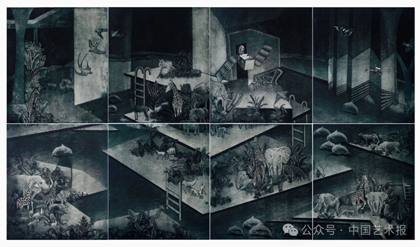 步入第十届中国北京国际美术双年展的展厅,一幅名为《和平的旋律》的版画吸引了观众的目光,作品将古希腊雕塑家创作的《胜利女神》和中国雕塑家创作的《和平少女》并置于同一画面,来表现人类文明的崇高理想——“和平世界”这一主题。在另一件雕塑《时光Ⅱ》中,一只黑脸琵鹭昂首阔步,艺术家将这个濒危物种化为理想中的生态使者,以体现人、动物、环境的和谐共生。这些作品都指向第十届中国北京国际美术双年展的主题——“共生”。
