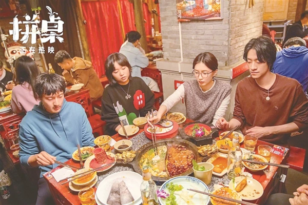 《拼桌》是一部与更多普通人靠近和对话、对生活与人性有细腻描摹与真诚洞见的影片。片中,张嘉怡要在葱油拌面里加上一点辣椒,陆拾谷忍不住建议“你可以先吃原味,你可以尝到两种味道”。这里,藏着编导对观众讲述生活观察的心得:不必在意是否是地道的海派,你要不要先尝尝?影片以食物为媒介,塑造人物、编织人物关系,并且加入对人的身份指认的回味:片中的妈妈自认是上海人,外婆说自己是湖南人,并且念念不忘童年乡下刀豆的味道,“人可以欺骗自己,骗不了你的胃”;一罐自制的辣椒酱,揭示已经在沪上生儿育女、子孙延续的老一辈,原来也有故乡;而大都市之中,谁人不在漂泊?地域空间并不能安放人的心灵,人们需要的是心灵的故乡。