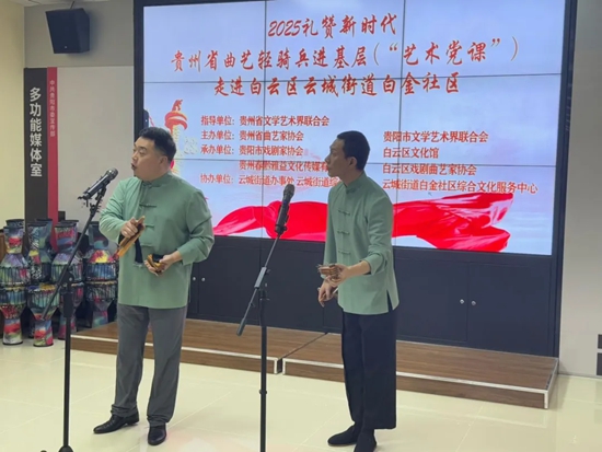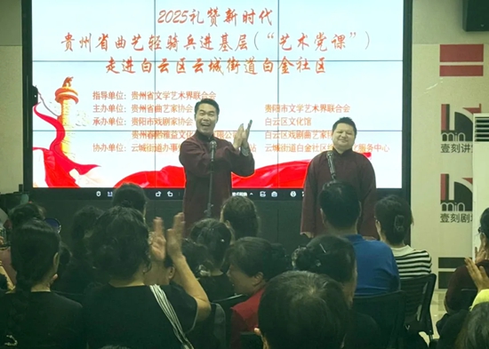 6月17日,2025礼赞新时代·贵州省曲艺轻骑兵进基层活动在贵阳市白云区云城街道白金社区党群服务中心举行,白金社区党员干部代表和社区居民代表60余人参加。