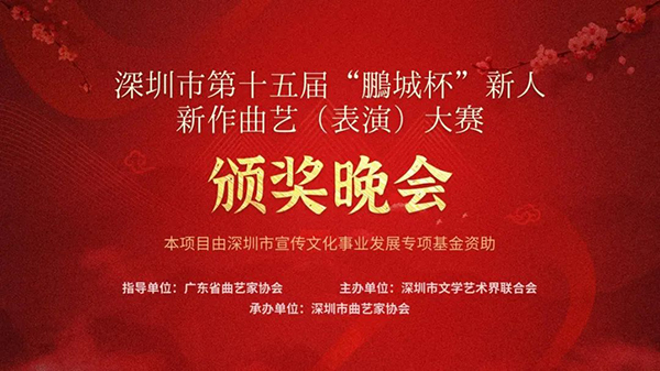 12月19日,深圳市第十五届“鹏城杯”新人新作曲艺(表演)大赛颁奖晚会在深圳大剧院举行,本赛事由广东省曲艺家协会指导、深圳市文学艺术界联合会主办、深圳市曲艺家协会承办,是深圳市文联品牌活动之一,每年一届,已连续举办十五届。