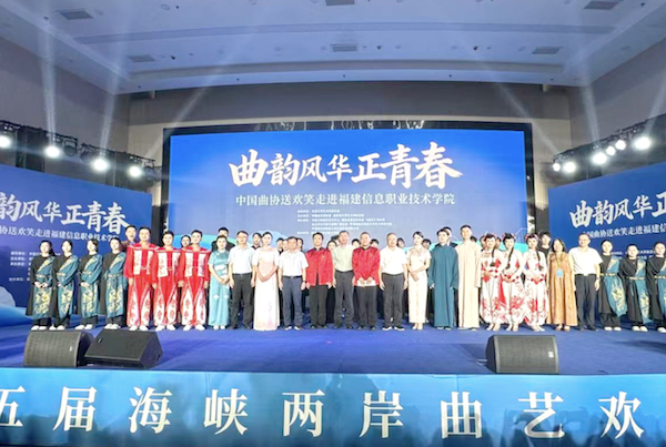 文化与教育相伴而生、相随而长,文化给教育以社会价值,教育给文化以生机活力。9月28日下午,两岸优秀青年曲艺演员走进福建信息职业技术学院,开场歌舞《乘风破浪》、快板书《武松打虎》、四川清音《山乡春早》、二人转表演唱《中华民族一家亲》、京韵大鼓《丑末寅初》《重整河山待后生》、苏州弹词《声声慢》、相声《甲方乙方》、《海岛阿卡贝拉组歌》等8个精彩节目,为在场师生带去了一场思考与欢笑齐飞的视听享受,也在润物无声中将曲艺的种子播撒进了莘莘学子的心田。