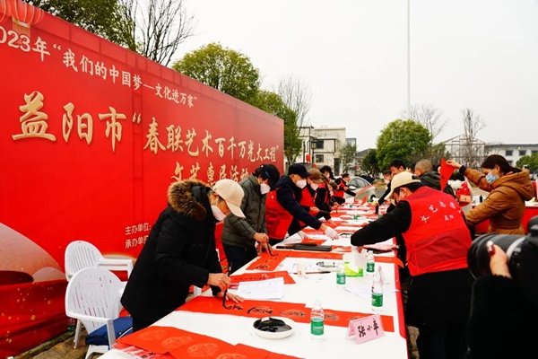 春联艺术“百千万”工程是湖南省文艺家深入基层为人民而作的一次生动实践,彰显了湖南省广大文艺工作者的使命担当,弘扬向上向善的道德风尚,受到三湘群众的欢迎与好评。