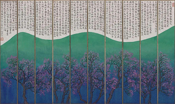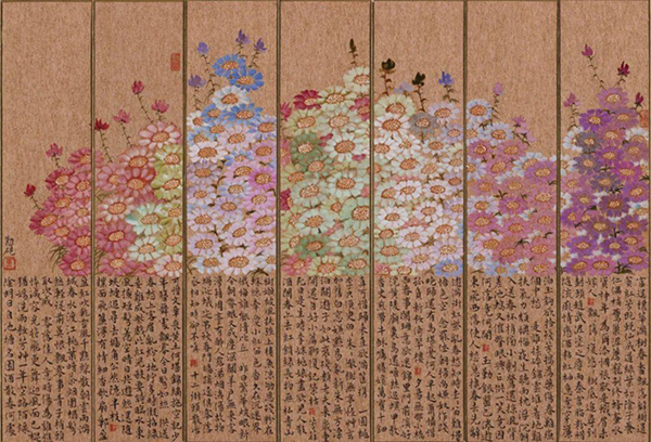 郑勤砚作品中的清新雅致离不开她骨子里的古韵。她继承了传统文脉中“书画同源”的表现方式,将书法与绘画并置,更显相得益彰。展览主题“水云间”恰如其分地诠释了郑勤砚的作品——既有着一份古意禅宗的宁静致远,又在这份淡雅中包罗万象,朴素而优雅,简洁而存真,在细微之间直抵心田,浸润肺腑。