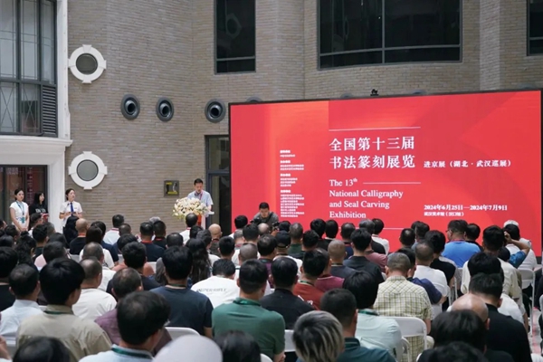 中国文联党组成员,中国书协分党组书记、驻会副主席李昕,中国书协主席孙晓云,中国书协副主席张继,湖北省文联党组书记、常务副主席张士军,湖北省文联党组成员、秘书长张海旺,湖北省文联副主席、省书协主席孟庆星,武汉市文联党组书记、副主席章建育,湖北省书协副主席、秘书长李劲松,以及第十三届国展入展作者、当地书法家代表等参加开班式。中国书协分党组成员、副秘书长张潇羽主持开班式。