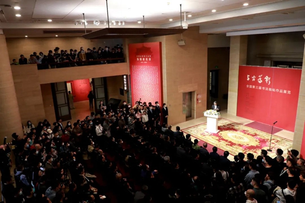 4月1日,由中国书协、中国美术馆、安徽省文联主办,中国文联书法艺术中心、安徽省书协、中国宣纸股份有限公司承办的全国第三届书法临帖作品展览在北京中国美术馆开幕。