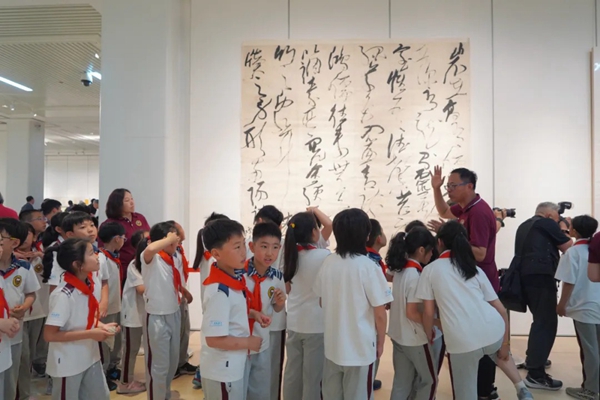本次展览作品是从第四届至第七届兰亭奖的获奖作品中精选而出,将展至6月9日。回望兰亭,不仅是对以《兰亭序》为代表的中国书法传统书写精神的弘扬,也是对中国书法兰亭奖的设立在当代书法发展所发挥推动作用的总结。展览开幕前,青岛市书法特色学校青岛湖岛小学学生集体吟诵了《兰亭集序》。