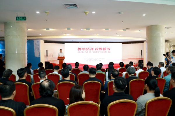 开幕式上,与会嘉宾共同观看《鲁喀情深·翰墨播芳》专题片。徐永军、李昕、叶培贵、张继、何思清、邓选斌共同为展览启幕。
