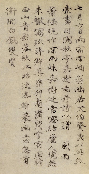 元 倪瓒 楷书赠叶诚等杂诗七首 纸本 纵29.2cm 横50.2cm 香港中文大学文物馆藏