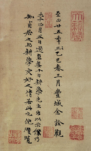 壬午九月有事于舟车者七阅月,跋涉艰辛,固无可言,而接遇之人,尤非当意者,辛未四月归来,得晤浣斋五兄,清谈竟日,足可洗去二百余日尘垢,因写此以赠并记之。[27]