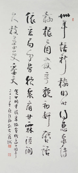 习近平总书记指出,坚持守正创新,用跟上时代的精品力作开拓文艺新境界。要把艺术创造力和中华文化价值融合起来,把中华美学精神和当代审美追求结合起来,激活中华文化生命力。这为当代书法人的为人、做事、从艺提供了行动指南。