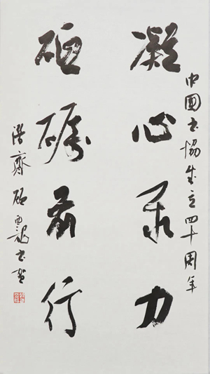 新的一年,中国书协将紧紧依靠广大书法工作者,不忘初心、牢记使命,扎根中华民族优秀传统文化沃壤,紧紧把握时代脉搏,努力在培根铸魂上展现新担当,在守正创新上实现新作为,在明德修身上焕发新风貌,深入生活,贴近时代,贴近人民,创作思想精深、艺术精湛的精品力作,让书法艺术的百花园,以崭新的姿态向人民绽放,共同迎接新时代姹紫嫣红文艺春天的到来。