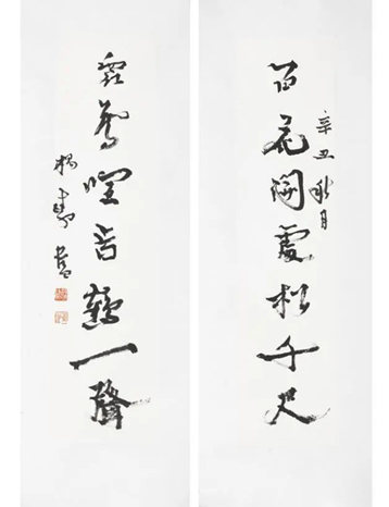 杨涛作品 《百花众鸟联》 68.5×17cm×2