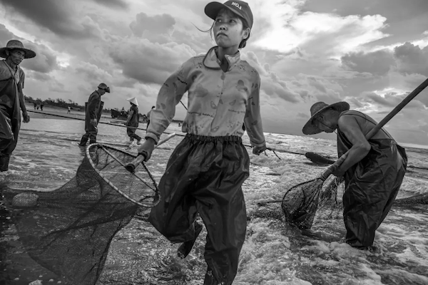 拍摄地点:广东茂名南海一带海岸线奔跑来捞鱼的渔女。