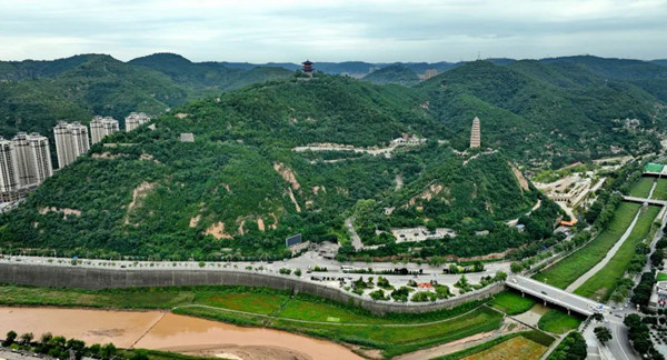 2022年8月15日,被绿水青山环抱的延安宝塔山。柳军 摄