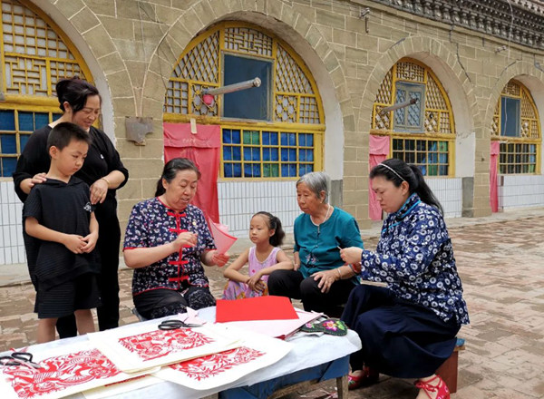 2022年8月13日,在延川县,两次获得中国民间文艺最高奖——山花奖的刘洁琼向大家展示剪纸艺术。冯晓伟 摄
